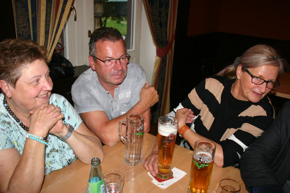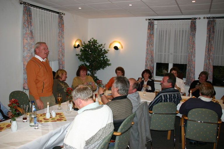04.11. - 05.11. 2006, bei "Momo" in Schellerhau Nachdem ich 1996 gezögert hatte, da ich ja "nur" 6 Jahre dabei war und so viel Zeit ins Land gegangen war, bin ich nun schon zum dritten Mal mit zum Treffen in Schellerhau. Auch wenn ich durch spätere Klassen-/Schule-Fusionen nicht alle Leute wirklich kenne, war immer eine super Stimmung und es kamen Erinnerungen eben aus der "frühen" Kindheit/Jugendzeit hoch. Hier ein paar Impression von 2006. Zuerst formierte sich langsam die Runde und wie zu sehen bin auch ich mit von der Partie. Besonders begehrt sind natürlich immer die Lehrer, die dann auch mit Ansprachen an "das Volk" nicht geizen. Der Klassenfoto-Versuch erweist sich als nicht so einfach ... Die ersten Schnäpse heben die Stimmung - aber es hilft nichts - gegen meinen Freund Wolle (2. Bild) habe ich bei den Frauen nichts entgegenzusetzen und bin "unscharf" (3. Bild). Zu vorgerückter Stunde gibt's wie üblich nur noch den harten Kern - und der treibt dann noch den "Flaschenteufel" aus. Wie man sieht haben wir immer viel Spaß! Zwischentermin 2011 musste ich wegen China-Urlaub pausieren... 2019 Dan gab es das nächste Treffen - zuerst Treff vor "unserer" gerade sanierten 39. Grundschule, Schleiermacherstr. 8 dann eine "Innenbesichtigung" manch eine(r) traute sich immer noch nicht zu melden Fototermin auf der Treppe abends im Schillergarten die üblichen "Diskussionen... später dann die "üblichen Verdächtigen"... vereinbart wurde bereits das nächste Treffen zum 50. Einschulungsjubiläum: 6.-7.9.2021 (???) in Schellerhau bei "Momo"...